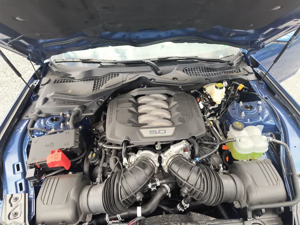 Mustang GT, 2D Coupe, 5.0L V8 Ti-VCT, 10-Speed Automatic, Blue Metallic, 3.55 Limited Slip Rear Axle, 4-Wheel Disc Brakes, ABS brakes, Air Conditioning, Alloy wheels, AM/FM Stereo, Auto High-beam Headlights, Automatic temperature control, Brake assist, Bumpers: body-color, Compass, Delay-off headlights, Driver door bin, Driver vanity mirror, Dual front impact airbags, Dual front side impact airbags, Electronic Stability Control, Emergency communication system: 911 Assist, Equipment Group 301A High Package, Exterior Parking Camera Rear, Four wheel independent suspension, Front anti-roll bar, Front Bucket Seats, Front Center Armrest, Front reading lights, Fully automatic headlights, Illuminated entry, Knee airbag, Leather Shift Knob, Leather steering wheel, Low tire pressure warning, Occupant sensing airbag, Outside temperature display, Overhead airbag, Overhead console, Panic alarm, Passenger door bin, Passenger vanity mirror, Power door mirrors, Power steering, Power windows, Premium Floor Liners Front & Rear (w/Carpet Mats), Radio data system, Rain sensing wipers, Rear anti-roll bar, Rear Parking Sensors, Rear window defroster, Remote keyless entry, Speed control, Speed-sensing steering, Speed-Sensitive Wipers, Split folding rear seat, Spoiler, Sport steering wheel, Start/Stop System (DISC), Steering wheel mounted audio controls, SYNC 4.0 QNX, Tachometer, Telescoping steering wheel, Tilt steering wheel, Traction control, Trip computer, Variably intermittent wipers, Voltmeter, Wheels: 19 x 8.5 Premier Polished Aluminum, Mustang GT, 2D Coupe, 5.0L V8 Ti-VCT, 10-Speed Automatic, Blue Metallic.