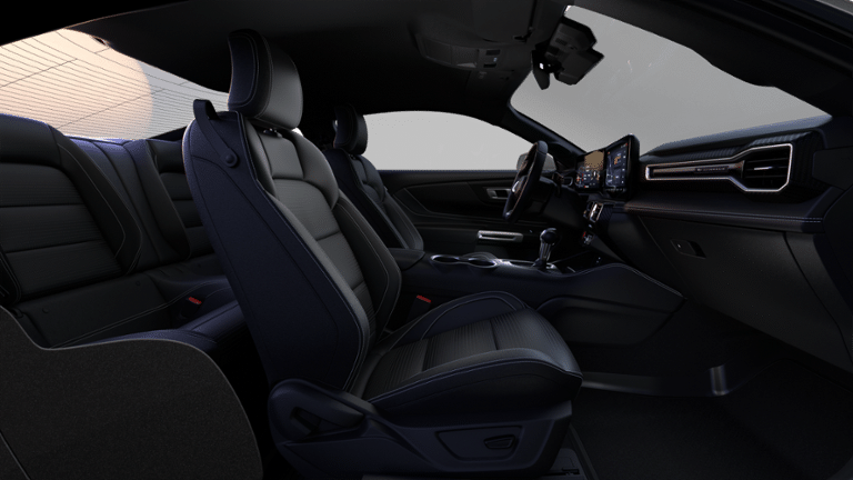 EQUIPMENT GROUP 201A HIGH PACKAGE Premier Trim w/Color Accent Group, accent stitched center console lid and shifter boot, 5-piece leather-wrapped steering wheel w/chrome bezel and unique color-accented door-trim, Instrument Panel w/Accent Stitch, Perimeter Alarm, Ford Co-Pilot360 Assist+, Driver-assist features are supplemental and do not replace the drivers attention, judgment, and need to control the vehicle, It does not replace safe driving, See Owners Manual for details and limitations, Adaptive Cruise Control w/Stop & Go, lane centering assist, intelligent speed assist and predictive speed assist, Pre-Collision Assist w/Automatic Emergency Braking, One-Year Connected Navigation, Lane-Keeping System w/Lane Keeping Aid, Lane Keeping Alert, Driver Alert, road departure warning and Blind, BRONZE APPEARANCE PACKAGE Wheels: 19 x 8.5 Sinister Bronze Painted Alum, Tires: 255/40R19W, Sinister Bronze Front & Rear Pony Badges, Spoiler Delete, WEDGE DECKLID SPOILER, TRANSMISSION: 10-SPEED AUTOMATIC selectable drive modes (STD), 1ST ROW CARPETED BLACK FLOOR MATS.